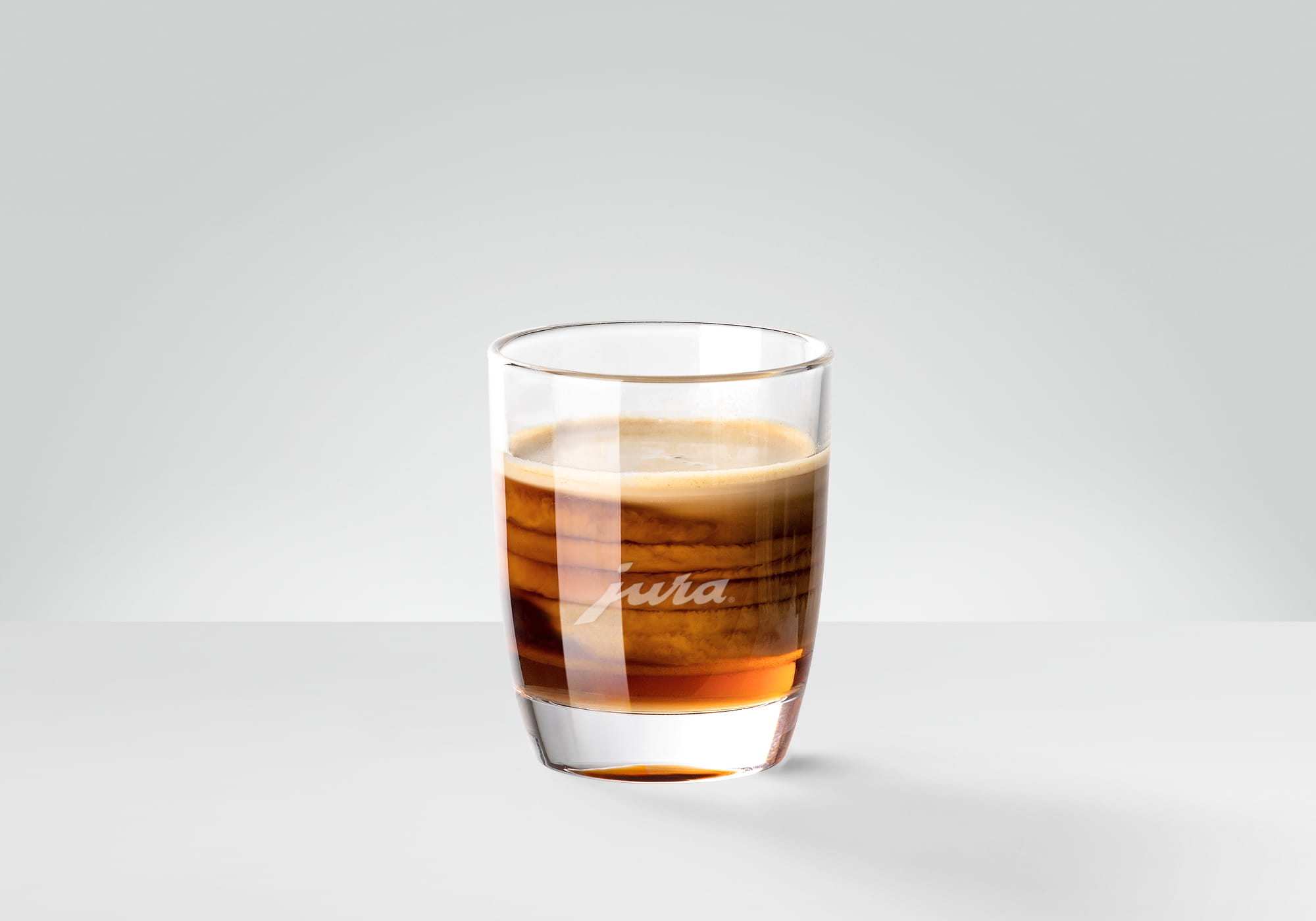 • Bereid de espresso direct in het espressoglas en vul het glas met koffieroom op.